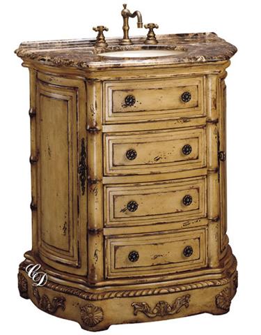 Bronze finish that matches traditional vanity sinks, shown at left.