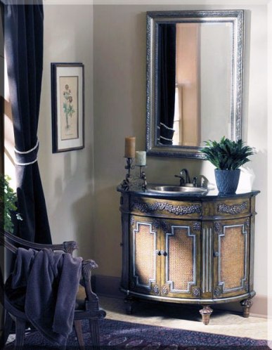 The counter top is genuine black marble with a antique brass finished sink & faucet that compliment the antique finish of the Rubber Wood cabinet. The style of this sink cabinet is elegant with a touch of casual Eastern influence that will compliment your decor.