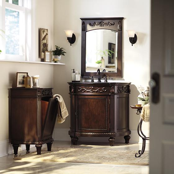 Bronze finish that matches traditional vanity sinks, shown at left.