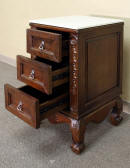 choice of Hand Polished White Carrara Marble, above at left OR Cream Marble Stone Tops,