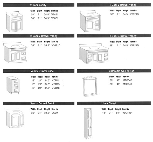 Sink Vanity width sizes: 48, 54, 60, 69", 72", 78", 84", 90", 96", 102" & 120"