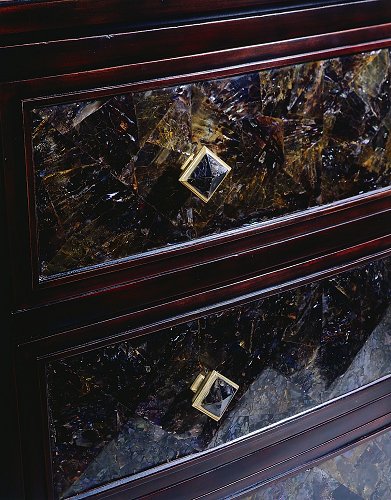 chest with gold rub-through and a fruitwood-finished chest with chocolate