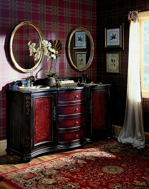 Bronze finish that matches traditional vanity sinks, shown at left.