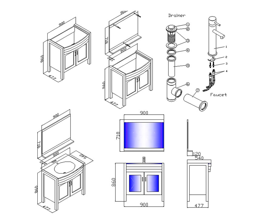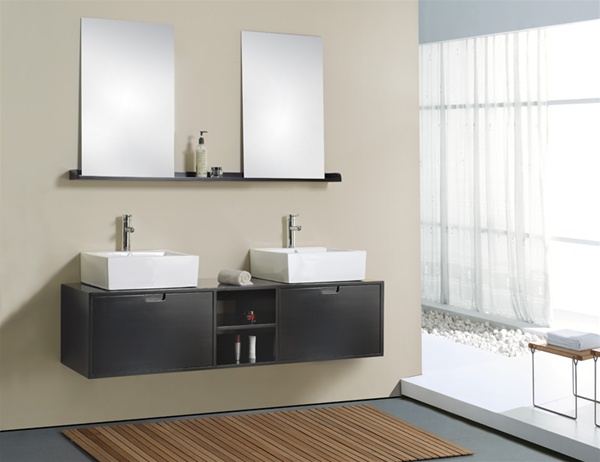 Wood Vanities: Cabinet panels of vanities on this page are made from high quality veneer wood (composite panels). All wood is properly dried and treated to offer the best protection against bathroom moisture and humidity.